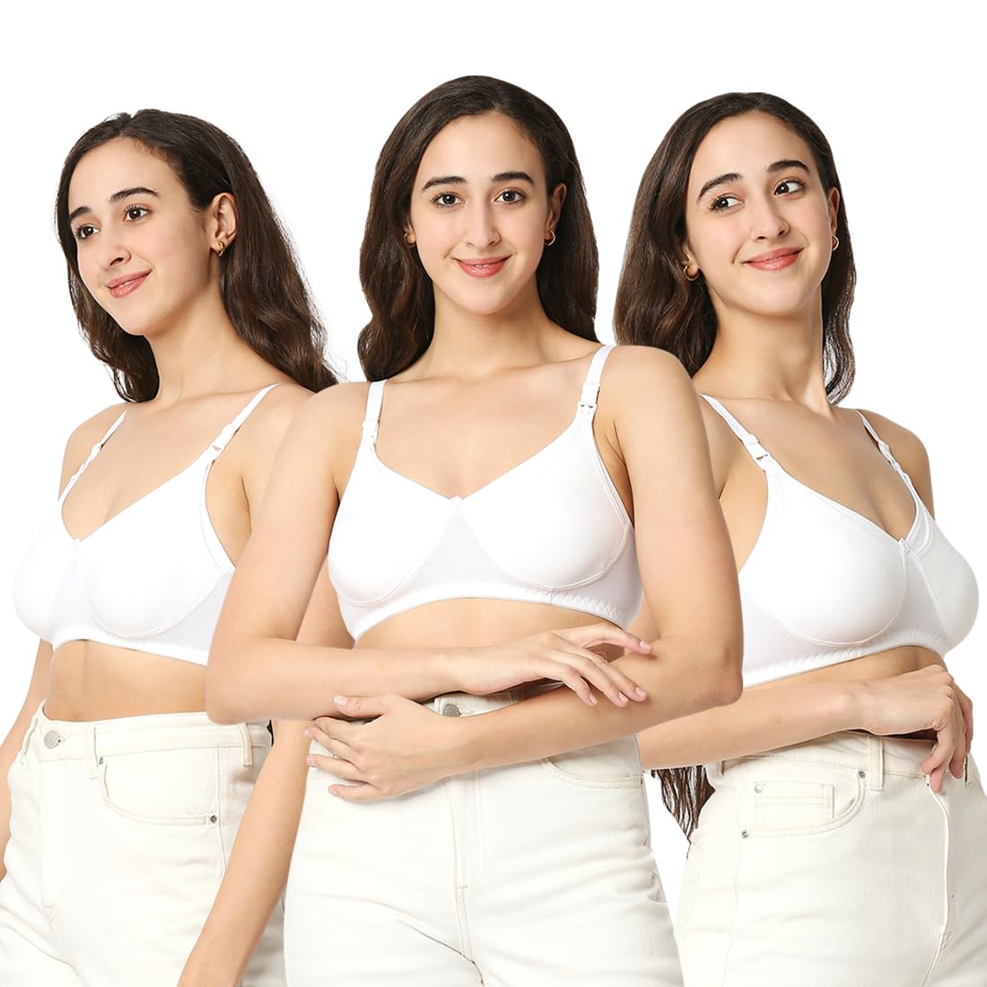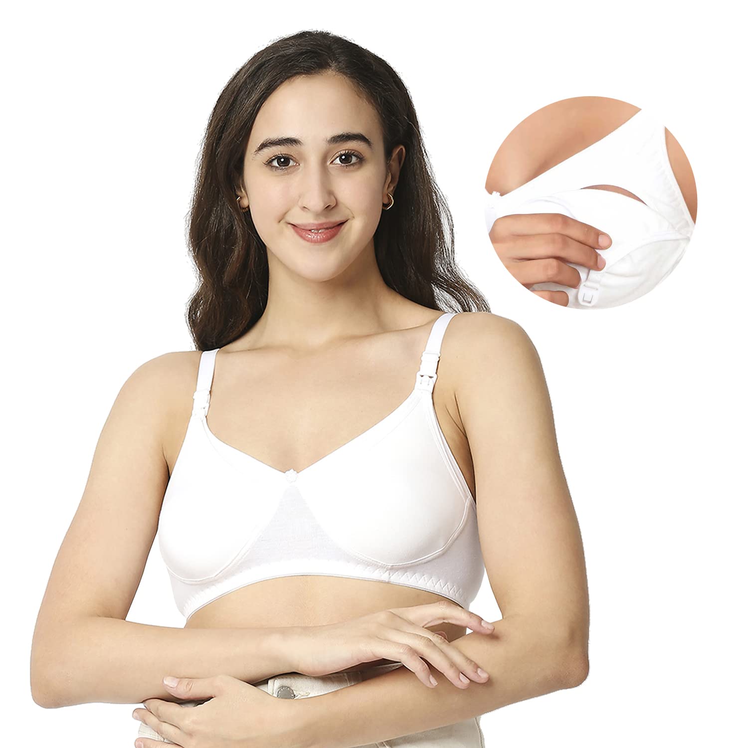 A feeding bra also known as a nursing bra is specially designed to provide comfort support and convenience for breastfeeding mothers. Unlike regular bras it features easy-access panels or cups that can be unclipped or pulled down to allow for quick and discreet breastfeeding or pumping. These bras are essential for new mothers as they make the process of breastfeeding smoother and more comfortable both at home and on the go. Made of 100% cotton with extra-soft elastic for ease of wear Front clasp with drop clip to breastfeed quickly. Non-wired for utmost comfort Equipped with thicker straps broader sides and a deeper center front for complete support Non-wired for utmost comfort Ergonomically designed fabric to aid in breastfeeding. Machine washable. Available in ALL sizes - 34 36 38 126 and cup sizes - B C D and neutral colors to suit your preferences.