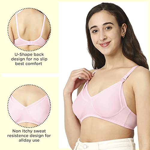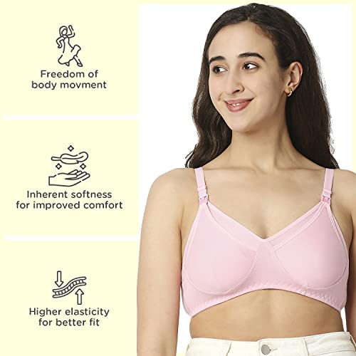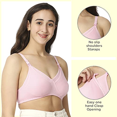 Mee Mee Women's Cotton Non-Padded | Double Layered | Wire Free Maternity Bra | Pink | Pk of 3 |