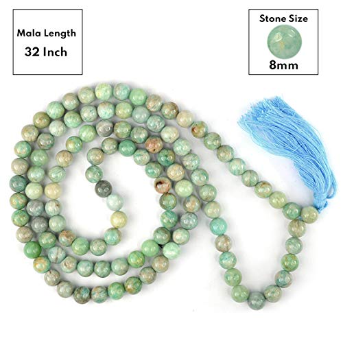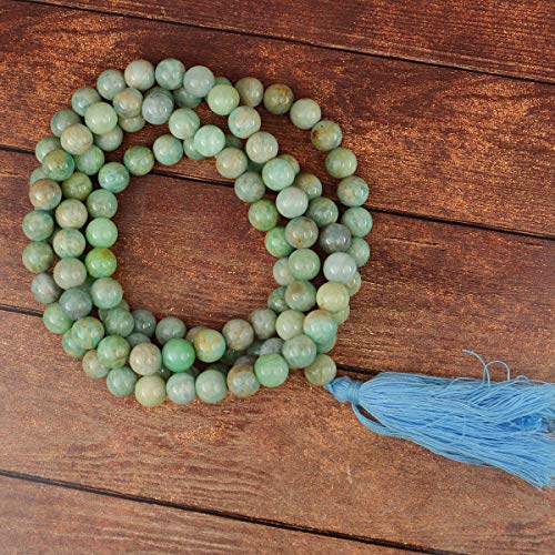 AAA Amazonite Mala Natural Crystal Stone 8 mm 108 Round Bead Jap Mala for Reiki Healing and Crystal Healing Stone (Color : Green)