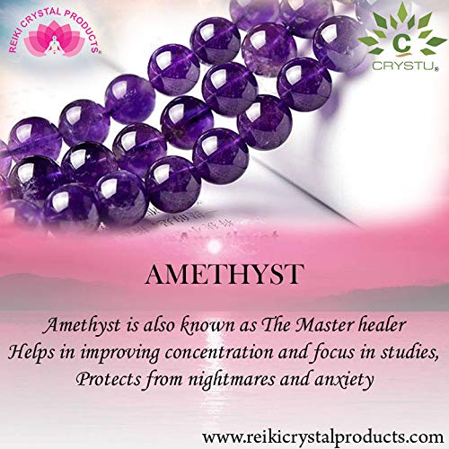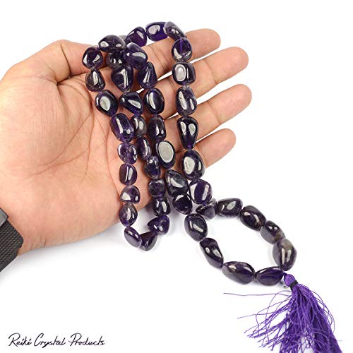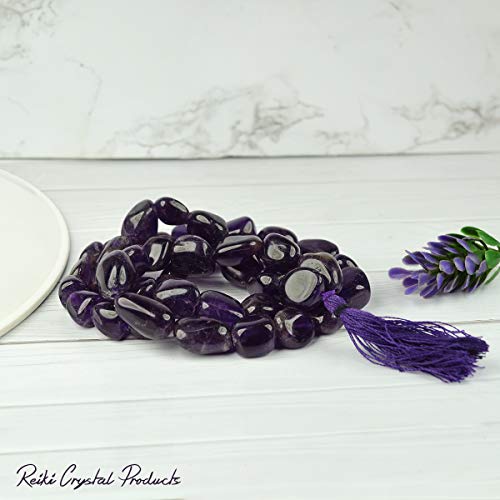 Amethyst Mala Tumble Bead Crystal Stone Mala/Necklace for Reiki Healing and Crystal Healing Stone (Color : Purple)