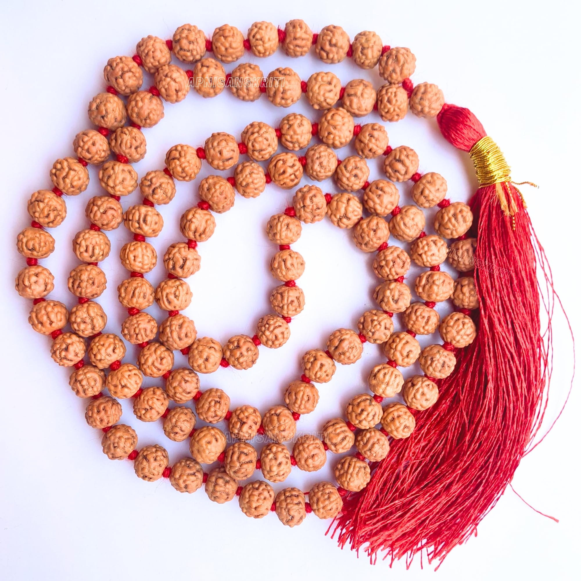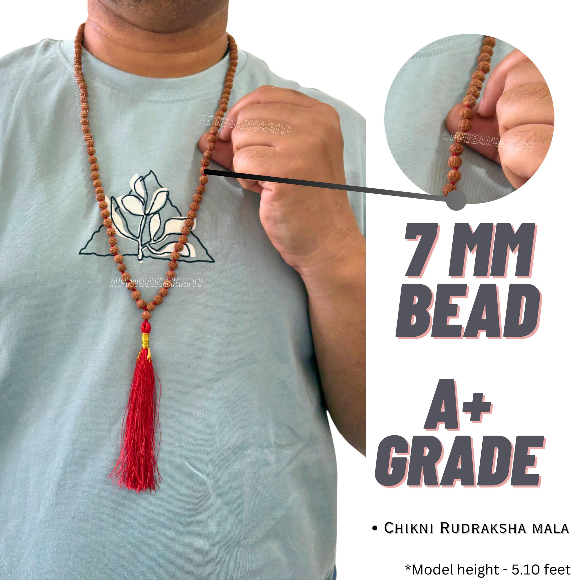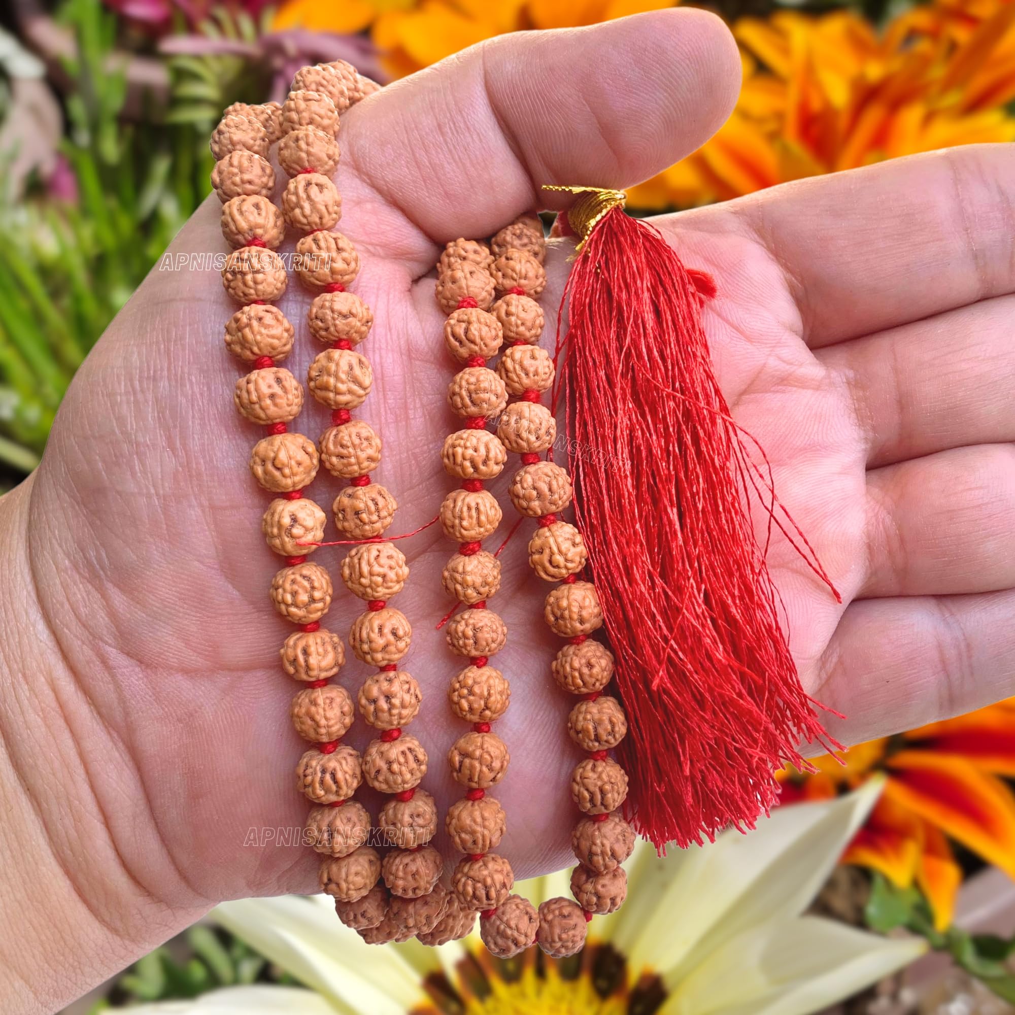 Apnisanskriti Lab Certified 5 Mukhi Chikni Pathri Rudraksha Mala for Men/Women Wearing (6Mm Medium Bead Size 108+1) - A+ Grade - 100% Natural Brown Rudraksh Beads - Pack of 1