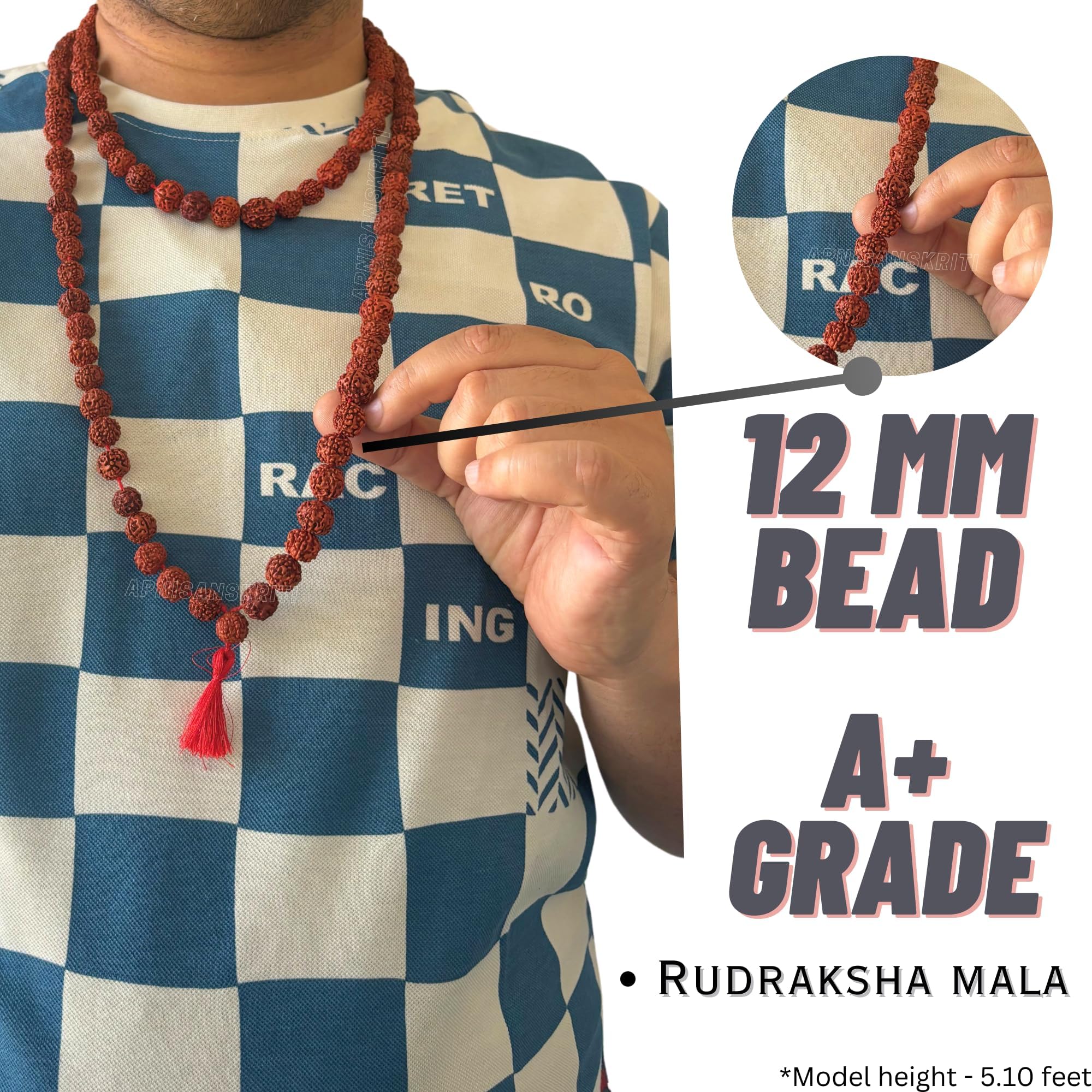 Apnisanskriti Rudraksha Mala (12 mm Full Length 108+1 Beads Lab Certified) - Natural Rudraksh Beads - Pack of 1