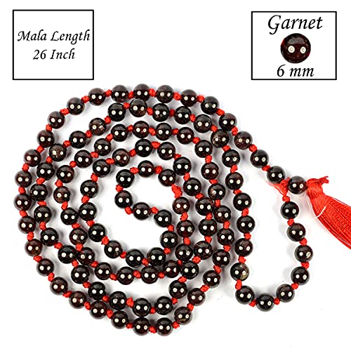 Certified Natural Garnet Mala Semi Precious Crystal Stone 6 mm 108 Beads Jap Mala / Necklace for Reiki Healing Stones (Color : Red)