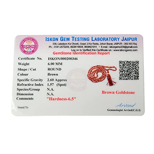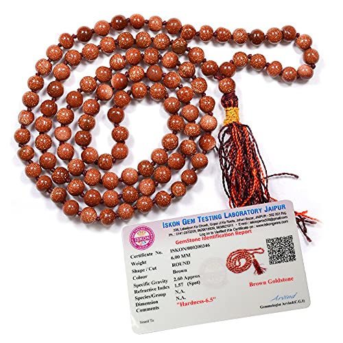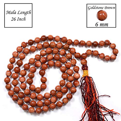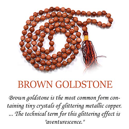 Certified Natural Goldstone Brown Mala Semi Precious Crystal Stone 6 mm 108 Beads Jap Mala / Necklace for Reiki Healing Stones (Color : Brown)