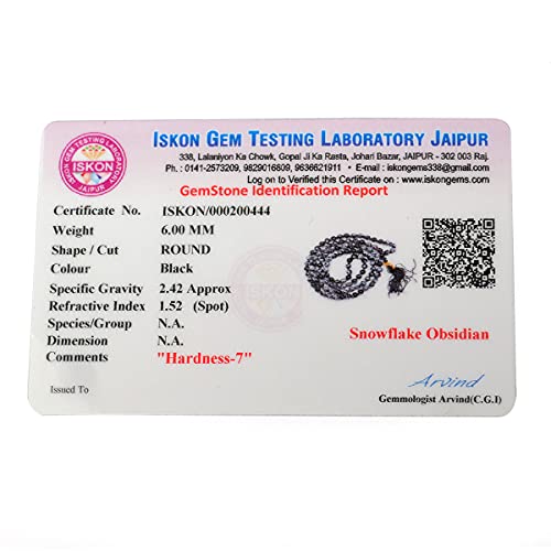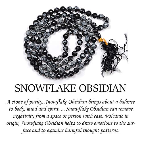 Certified Natural Snowflake Obsidian Mala Semi Precious Crystal Stone 6 mm 108 Beads Jap Mala / Necklace for Reiki Healing Stones (Color : Black)