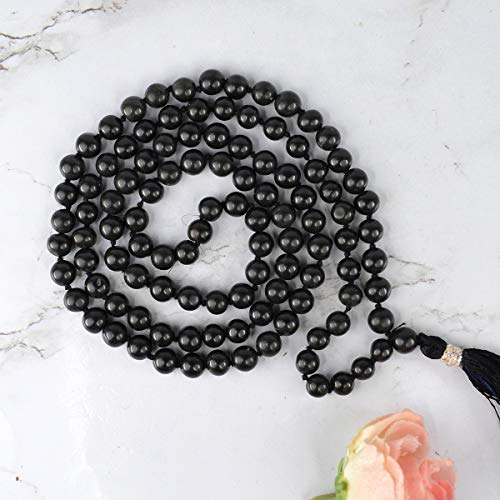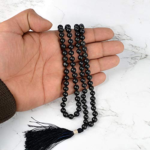 • Hand Made Natural Crystal Stone Black Agate Mala