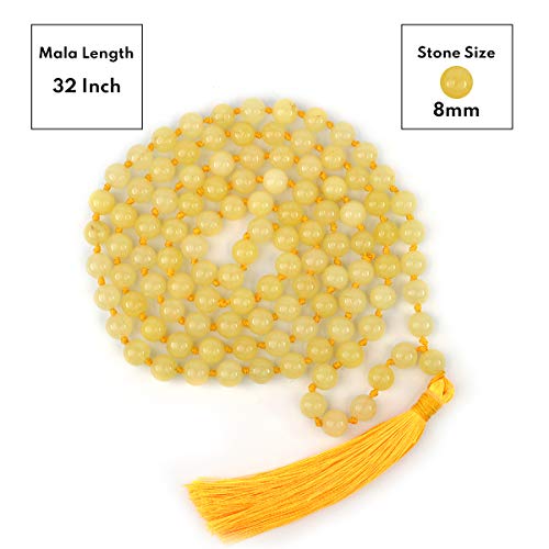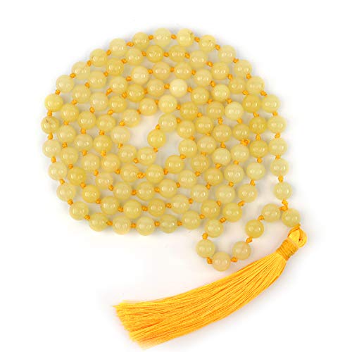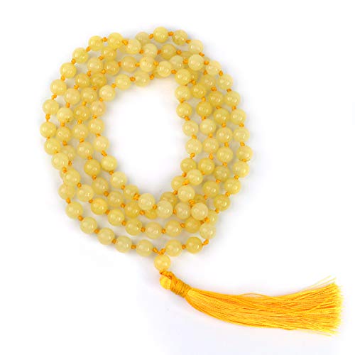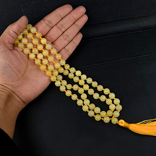 Golden Quartz Mala Natural Crystal Stone 8 mm 108 Round Bead Jap Mala for Reiki Healing and Crystal Healing Stone (Color : Yellow)