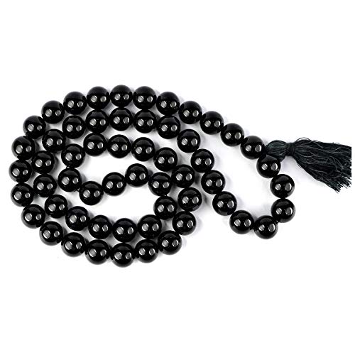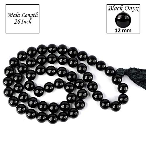 Hand Made Natural Crystal Stone Black Onyx Mala / Necklace | Length : 26 Inch. | Stone Size - 12 mm | Shape Round | Charged By Reiki Grand Master & Vastu Expert