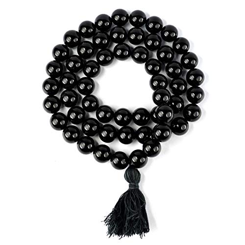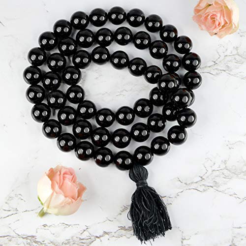 Natural Black Onyx Mala Crystal Stone 12 mm Round Beads Mala for Reiki Healing Stones (Color : Black)