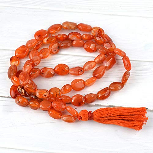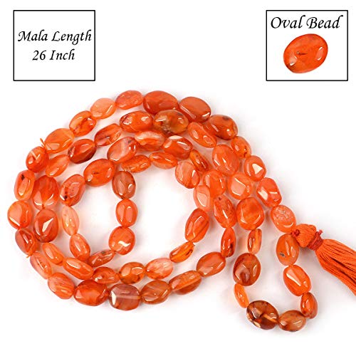 Natural Carnelian Mala Crystal Stone Oval Bead Mala for Reiki Healing Stone (Color : Red / Orange)
