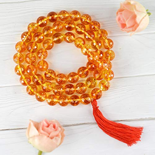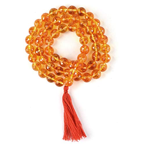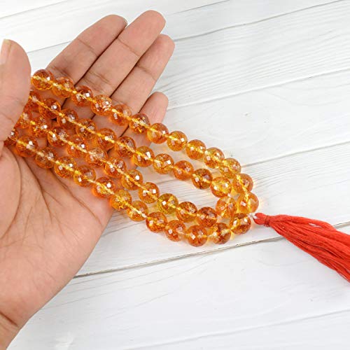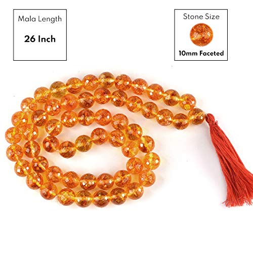 Natural Citrine Mala Crystal Stone 10 mm Faceted / Diamond Cut Bead Mala for Reiki Healing Stone (Co