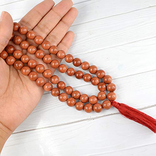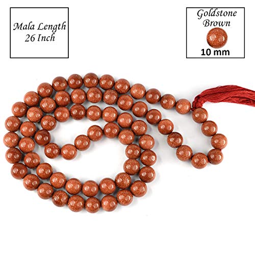 Hand Made Natural Crystal Stone Goldstone Brown Mala / Necklace | Length : 26 Inch. | Stone Size - 10 mm | Shape Round | Charged By Reiki Grand Master & Vastu Expert