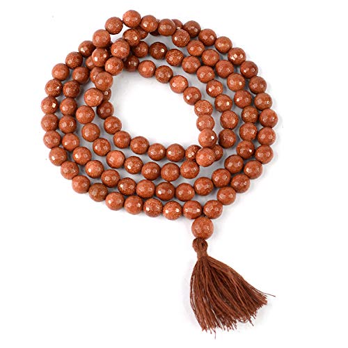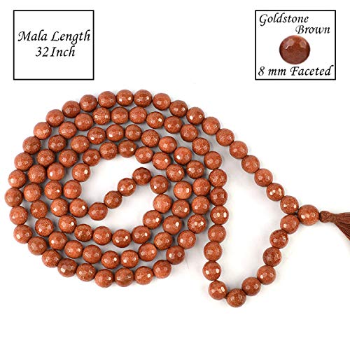 Hand Made Natural Crystal Stone Goldstone Brown Mala / Necklace | Length : 32 Inch. | Stone Size - 8 mm DC | Shape Round | Number of Beads 108 | Charged By Reiki Grand Master & Vastu Expert