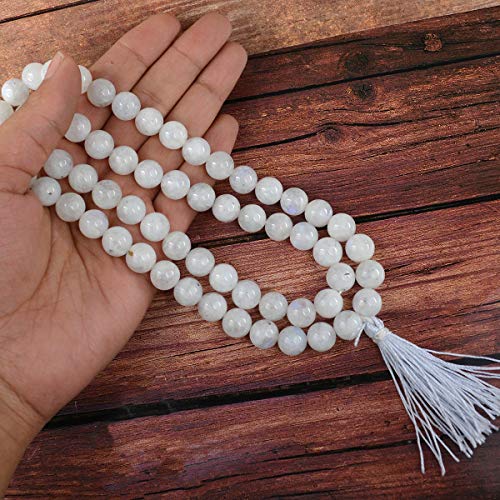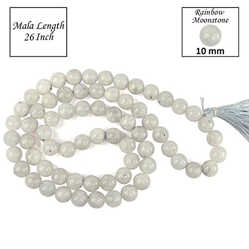 Natural Rainbow Moonstone Mala Crystal Stone 10 mm Round Beads Mala for Reiki Healing Stones (Color