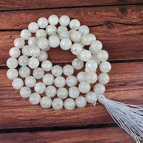 Natural Rainbow Moonstone Mala Crystal Stone 10 mm Round Beads Mala for Reiki Healing Stones (Color : White & Black)