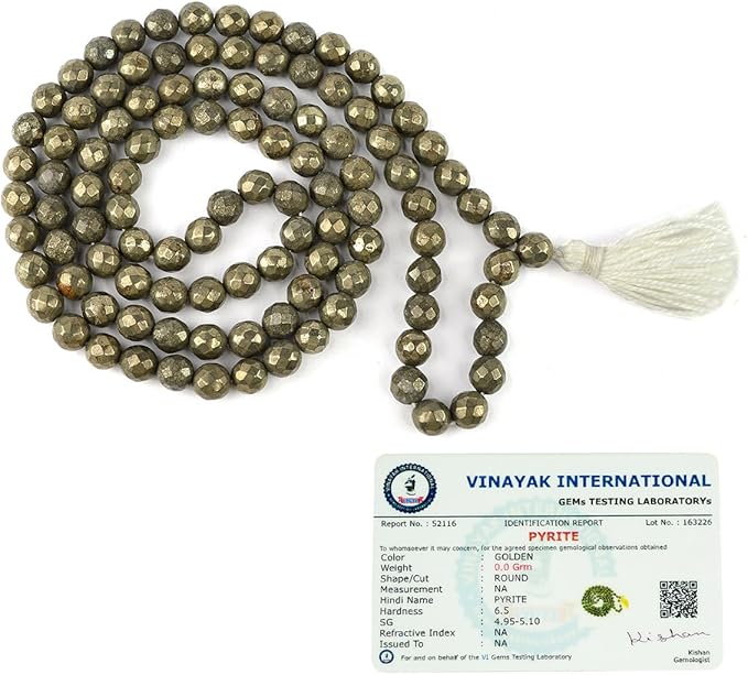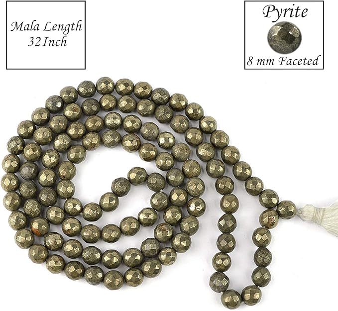 HomeFashionMalaReiki Crystal Products Natural Pyrite Mala Crystal Stone Faceted/Diamond Cut 108 Beads 8 mm Jap Mala for Reiki Healing and Crystal Healing Stone (Color : Golden)
