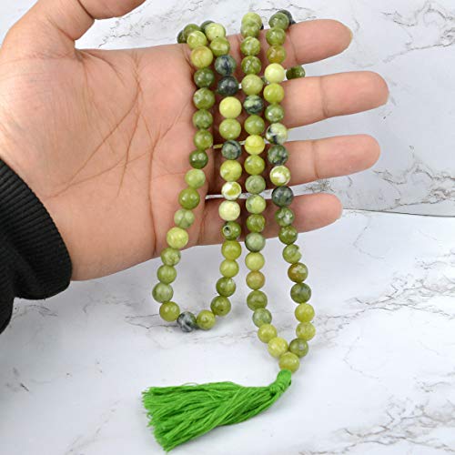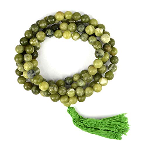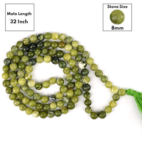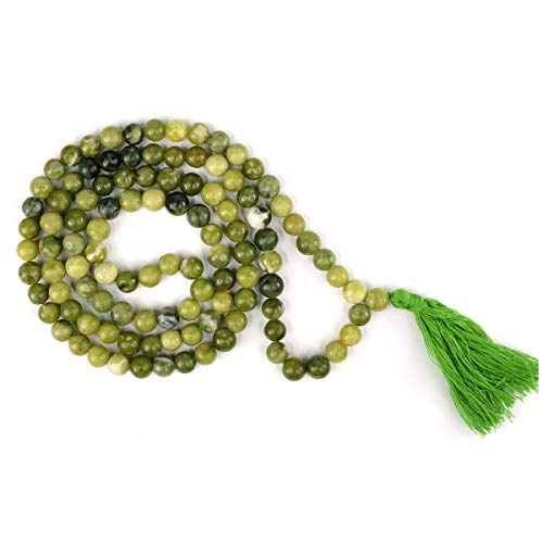 Serpentine Mala Natural Crystal Stone 8 mm 108 Round Bead Jap Mala for Reiki Healing and Crystal Healing Stone (Color : Green)
