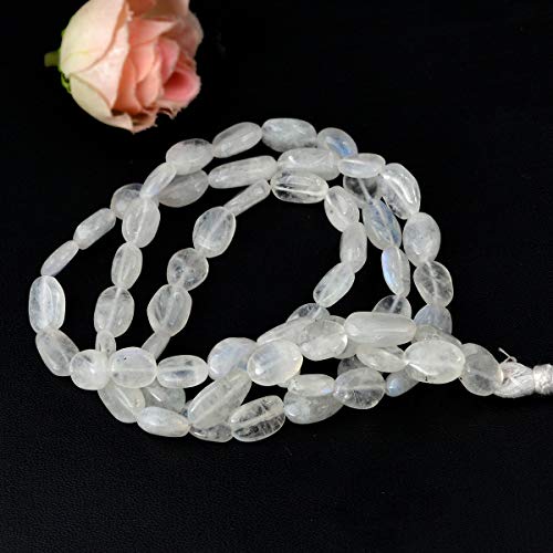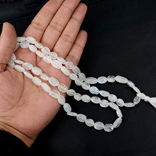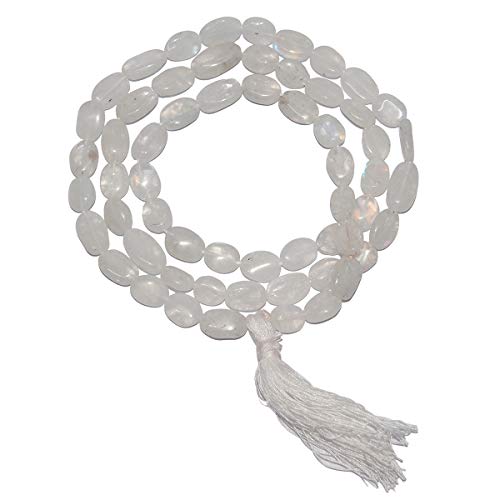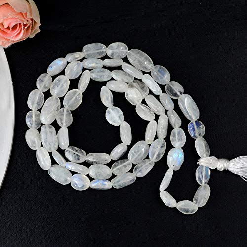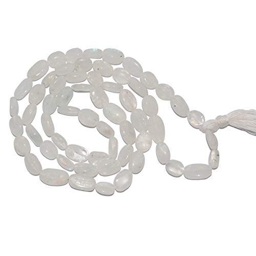White Rainbow Moonstone Mala Necklace Oval Beads for Men and Women