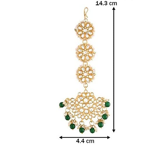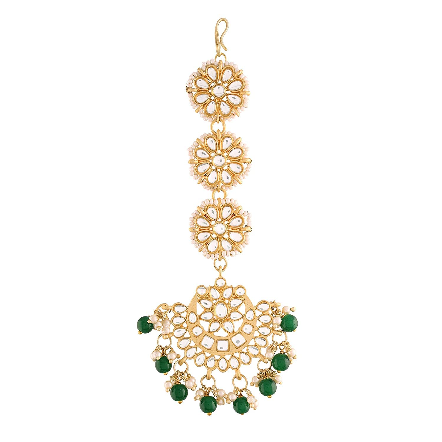 I Jewels 18K Gold Plated Matte Finish Traditional Pearls Kundan Studded Maang Tikka For Women/Girls (T2911)