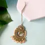 This maang tikka is crafted in 18k gold-plating and features kundan studded in it and secured with a hook closure. Style this as maang tikka or passa with your ethnic attires to complete the look. Perfect Accesory for your jewelry box!