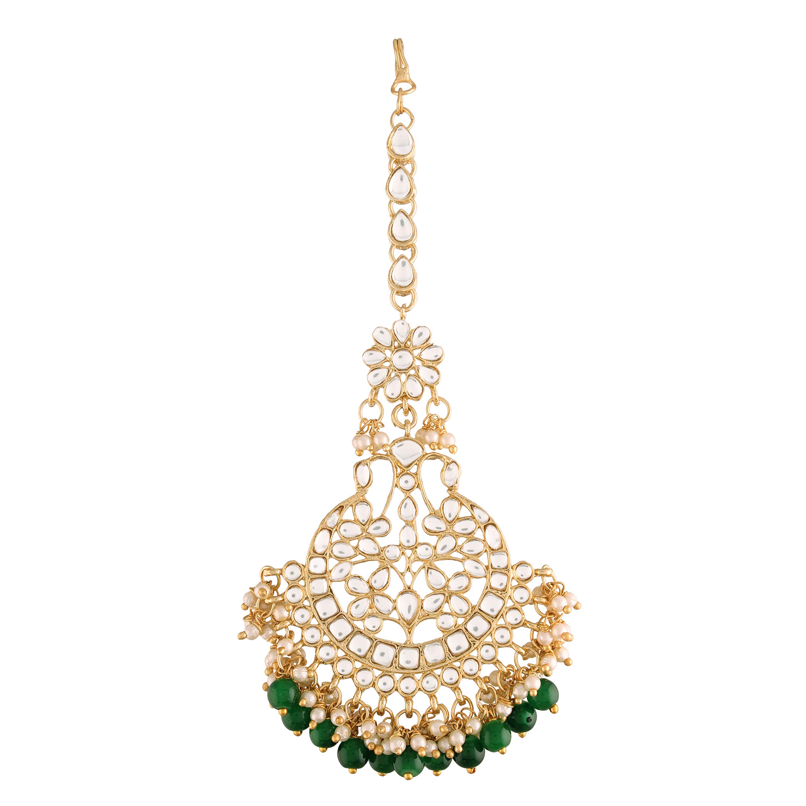 I Jewels 18K Gold Plated Traditional Kundan & Stone Studded Maang Tikka for Women & Girls (T2042)