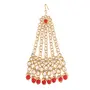 Gold Plated Kundan Studded With Pearl Passa - DIMENSION: Passa Length - 13 Cm X Width - 7 Cm. This maang tikka/passa is crafted in 18k gold-plating and features kundan studded in it and secured with a hook closure. Style this as maang tikka or passa with your ethnic attires to complete the look. Perfect Accessory for your jewellery box!