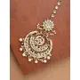 Traditional Kundan Studded with Pearls Maang Tikka - This maang tikka/passa is crafted in 18k gold-plating and features kundan studded in it and secured with a hook closure. Style this as maang tikka or passa with your ethnic attires to complete the look. Perfect Accessory for your jewelry box!