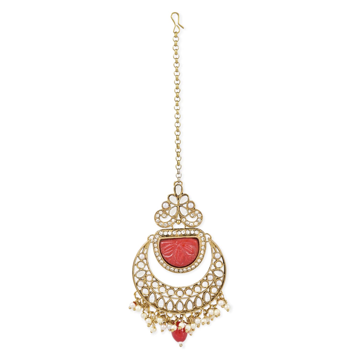 Whether you're a bride looking for the perfect wedding accessory or a fashion-forward individual seeking to make a statement this maang tikka effortlessly complements a variety of outfits from traditional saris to contemporary lehengas. Celebrate tradition and femininity with our Gold Plated Traditional Kundan Pearl Maang Tikka a timeless treasure that embodies the essence of Indian craftsmanship and beauty. Perfect for women and girls alike it's not just an accessory but a symbol of grace and sophistication.