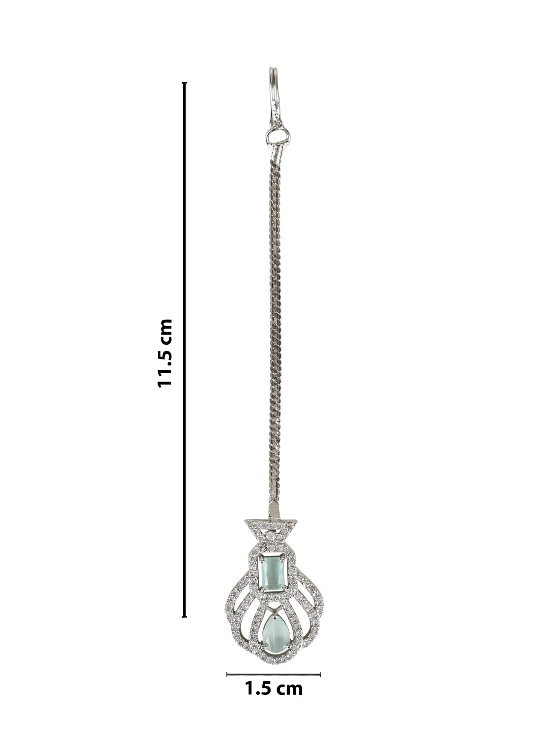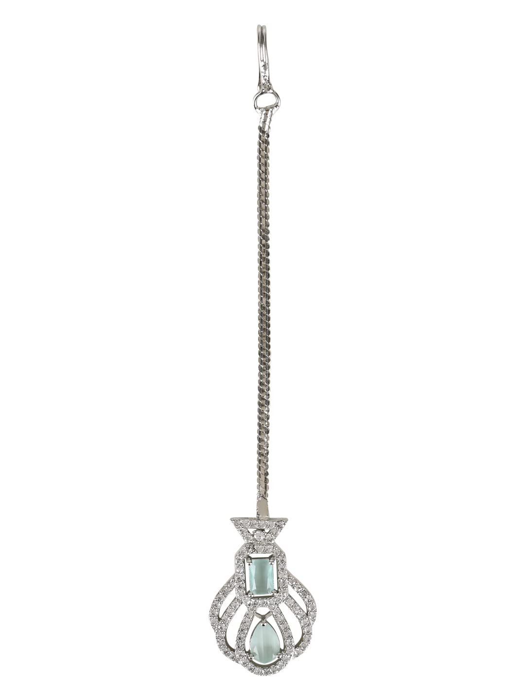 I Jewels Silver Plated Beautiful AD & CZ Studded Crystal Maang Tikka for Women and Girls (T2108)