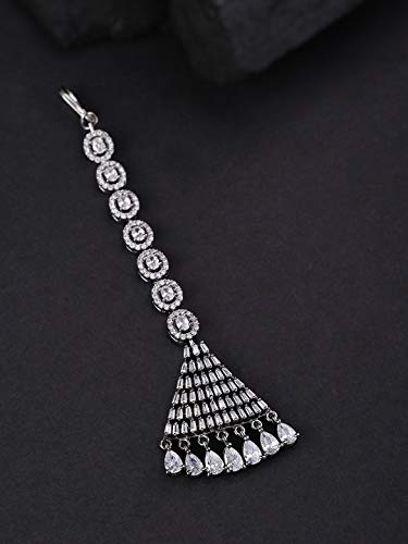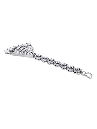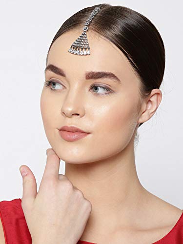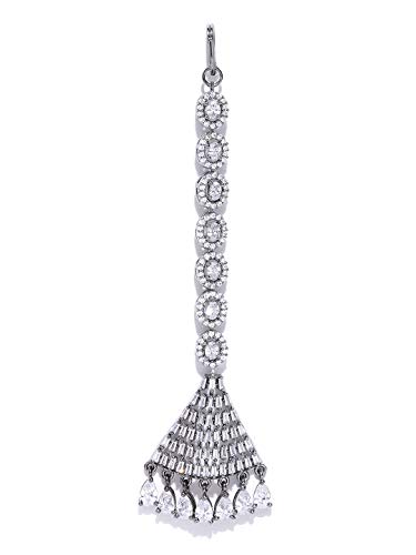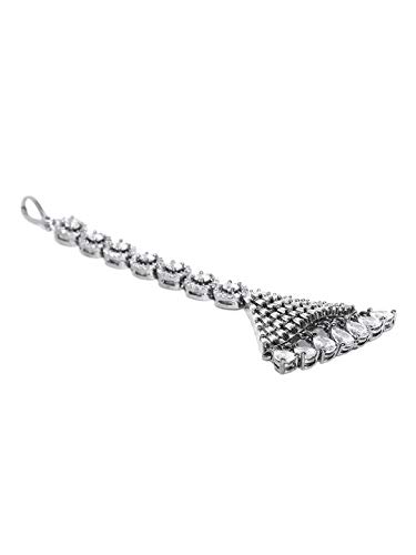 Priyaasi Beautiful Silver & Off White Silver-ColorMaang Tikka for Women and Girls