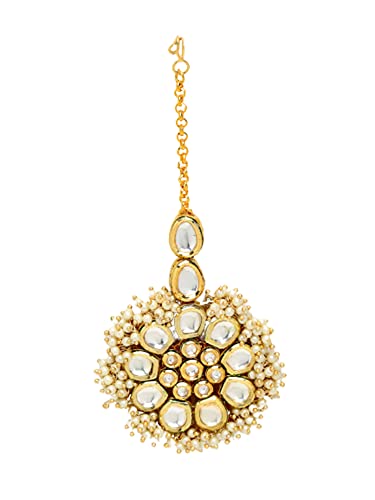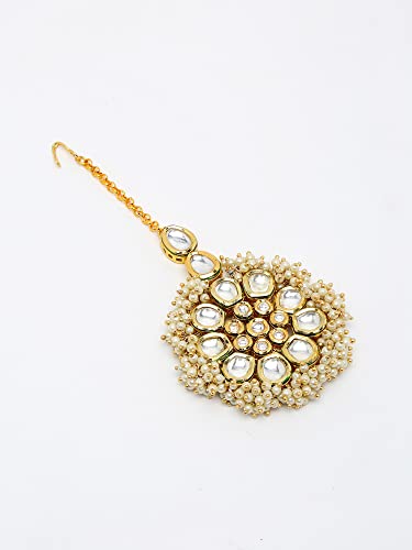 Ruby Raang Women's Mixed Metal Artificial Kundan Maang Tikkas - Traditional Jewellery Set for Women (White)