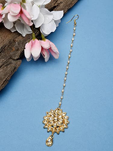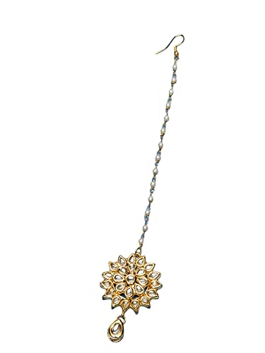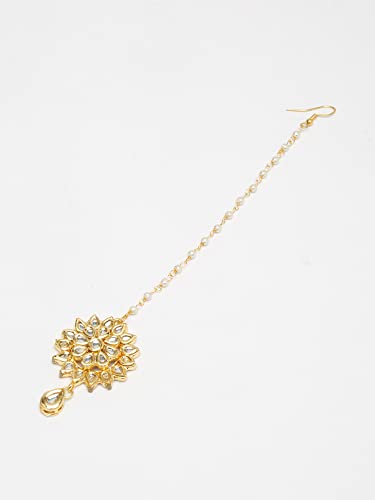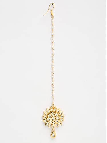 Ruby Raang Women's Mixed Metal Artificial Kundan Maang Tikkas - Traditional Jewellery Set for Women (White)