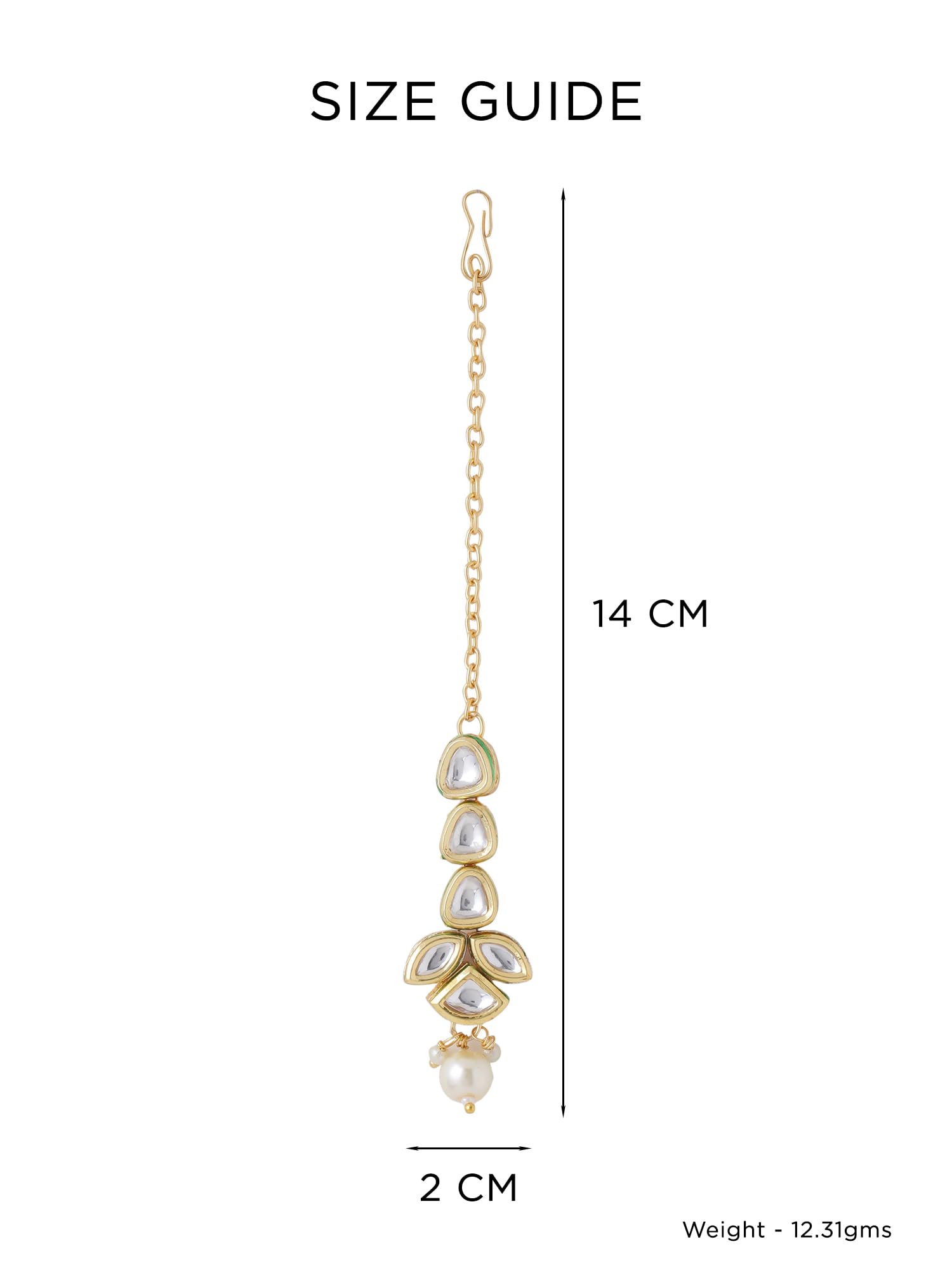 • Size Details: Maangtikka Length - 14CM Width - 2CM. Weight - 12.31GM