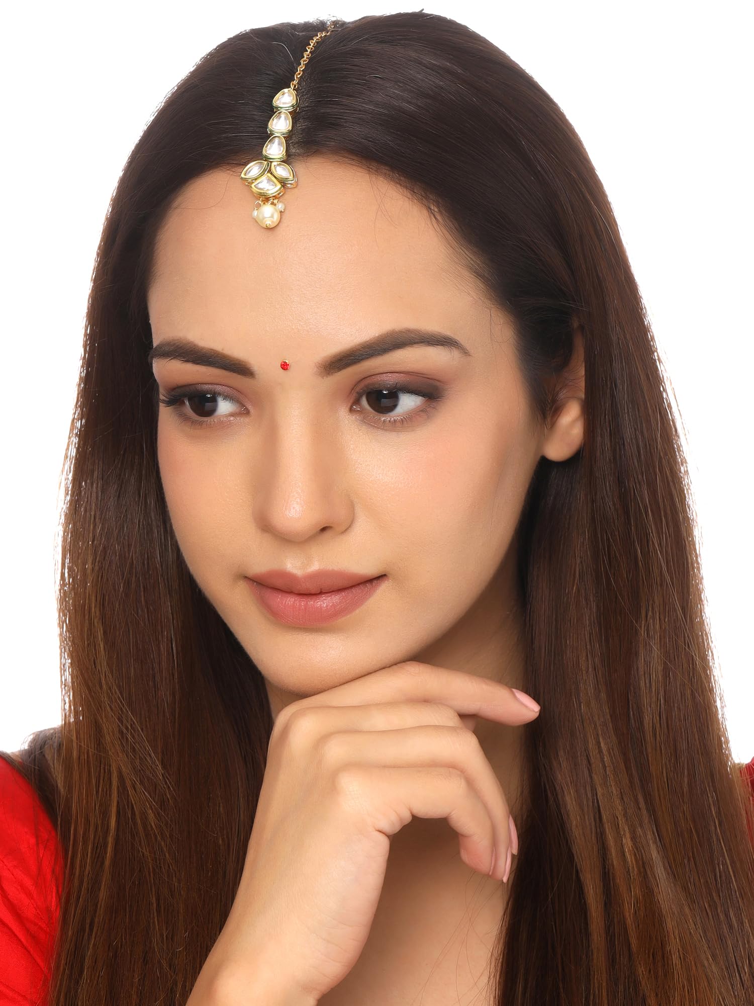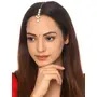 Yellow Chimes Maangtikka for Women Gold Toned Kundan Studded Floral Designed White Beads Drop Maangtikka for Women and Girls