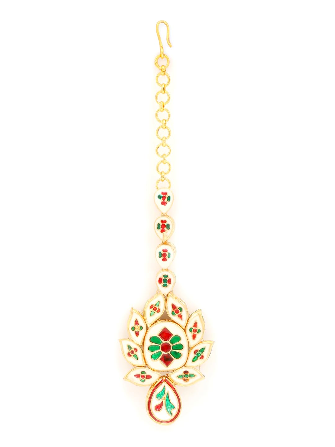 Yellow Chimes Traditional Gold Plated Kundan Studded Designer Ethnic Maang Tikka for Women and Girls