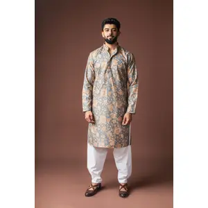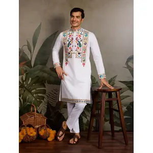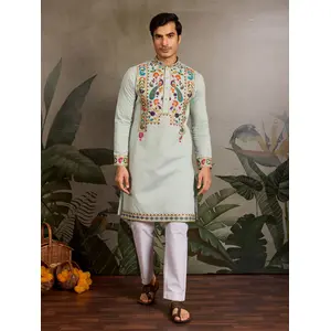 Cream Color Blended Linen Designer...