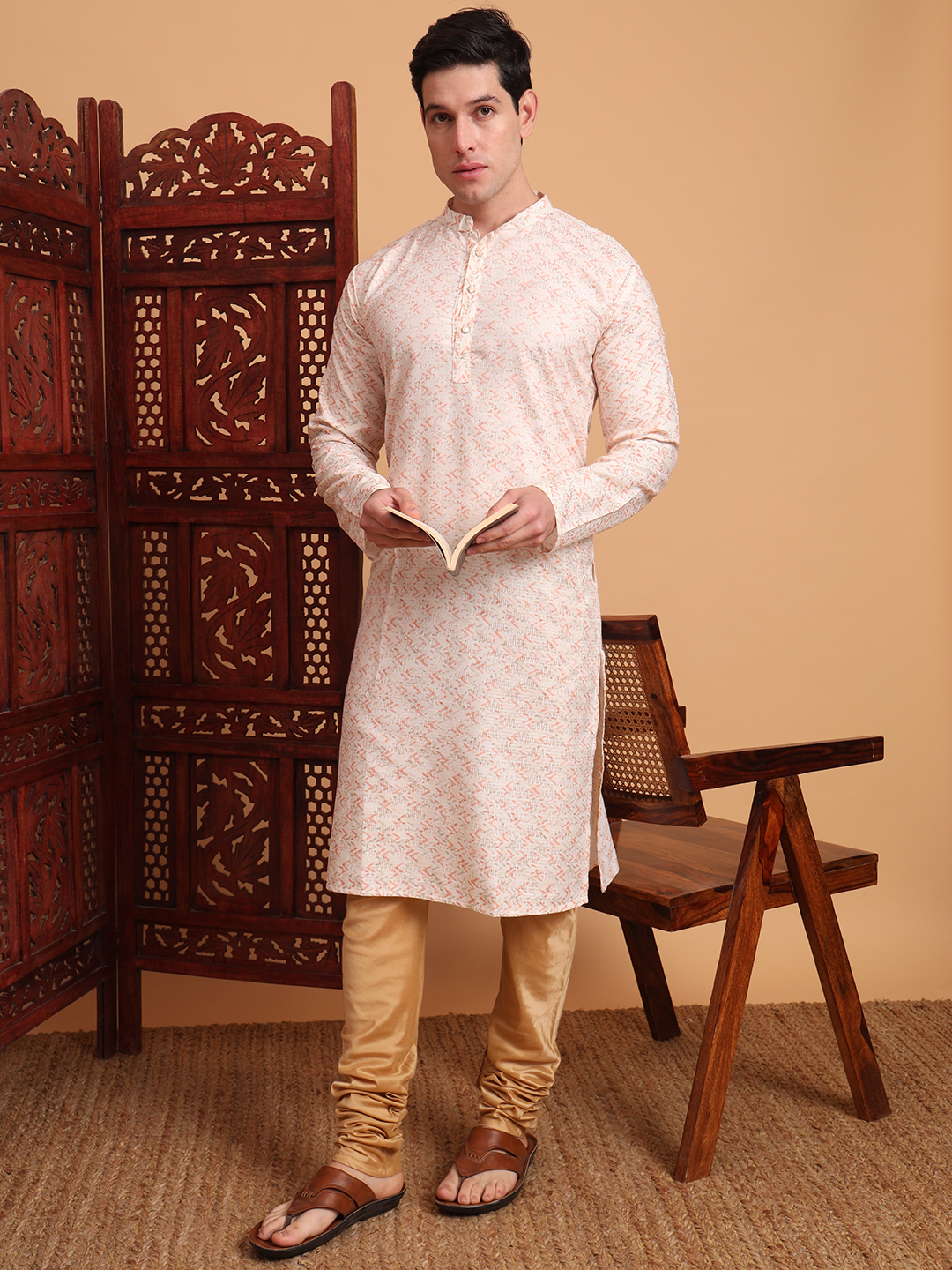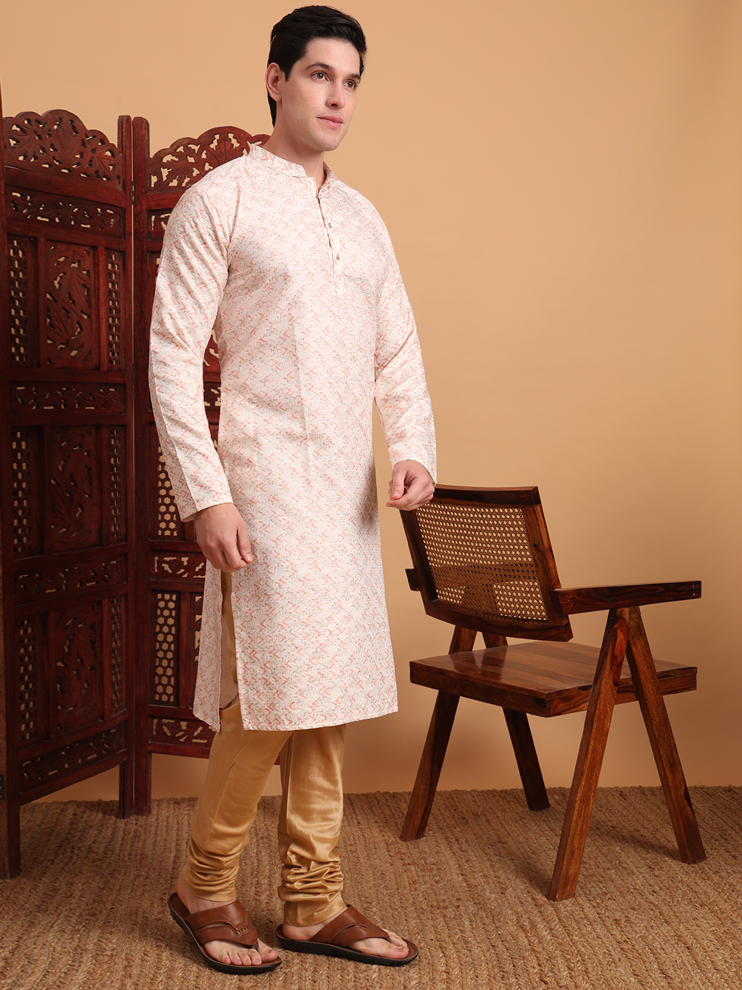 Beautiful Peach Color Smart Printed Men's Festive Wear Kurta