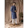 Blue Color Blended Linen Designer Printed Stylish Kurta Payjama For Mens'