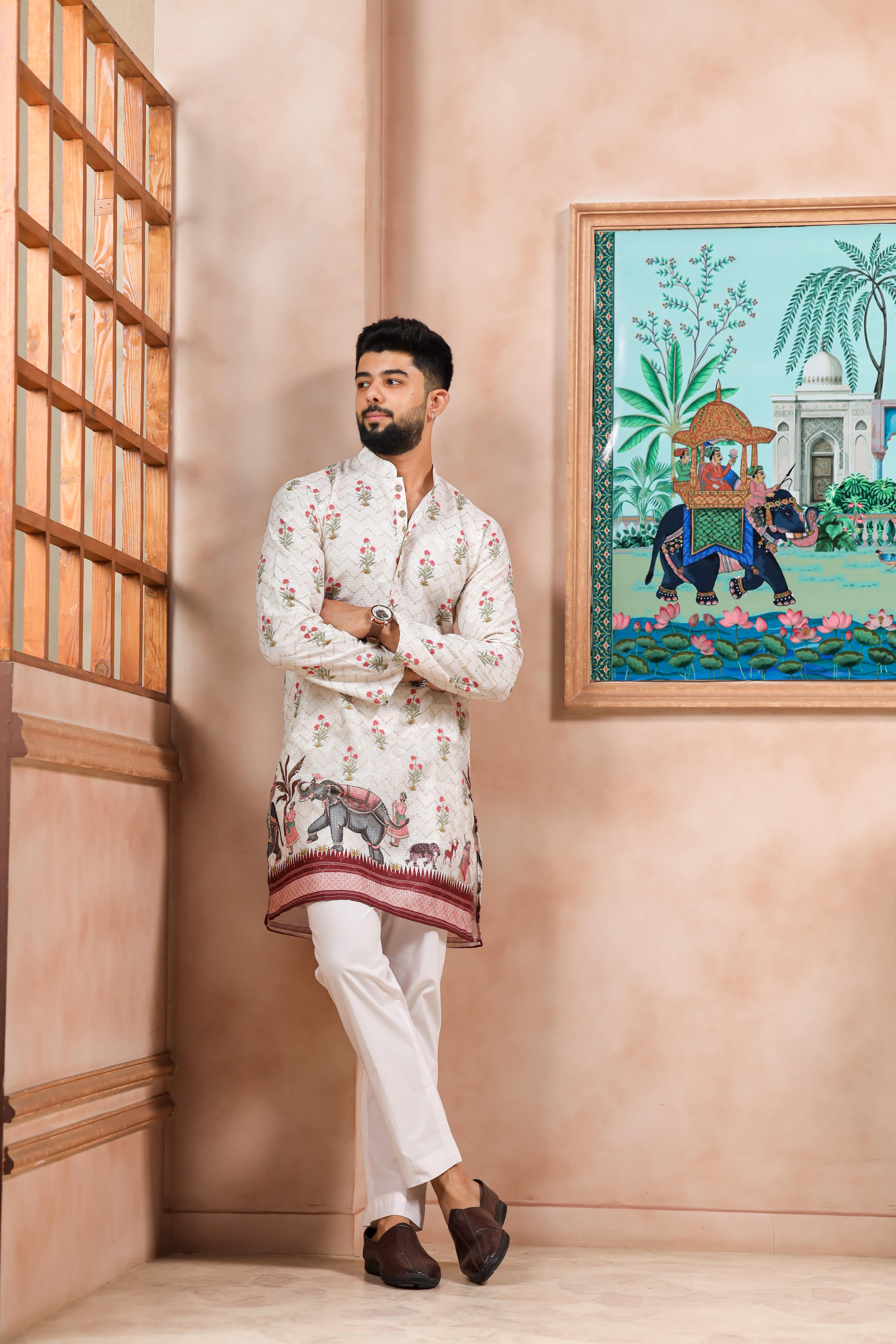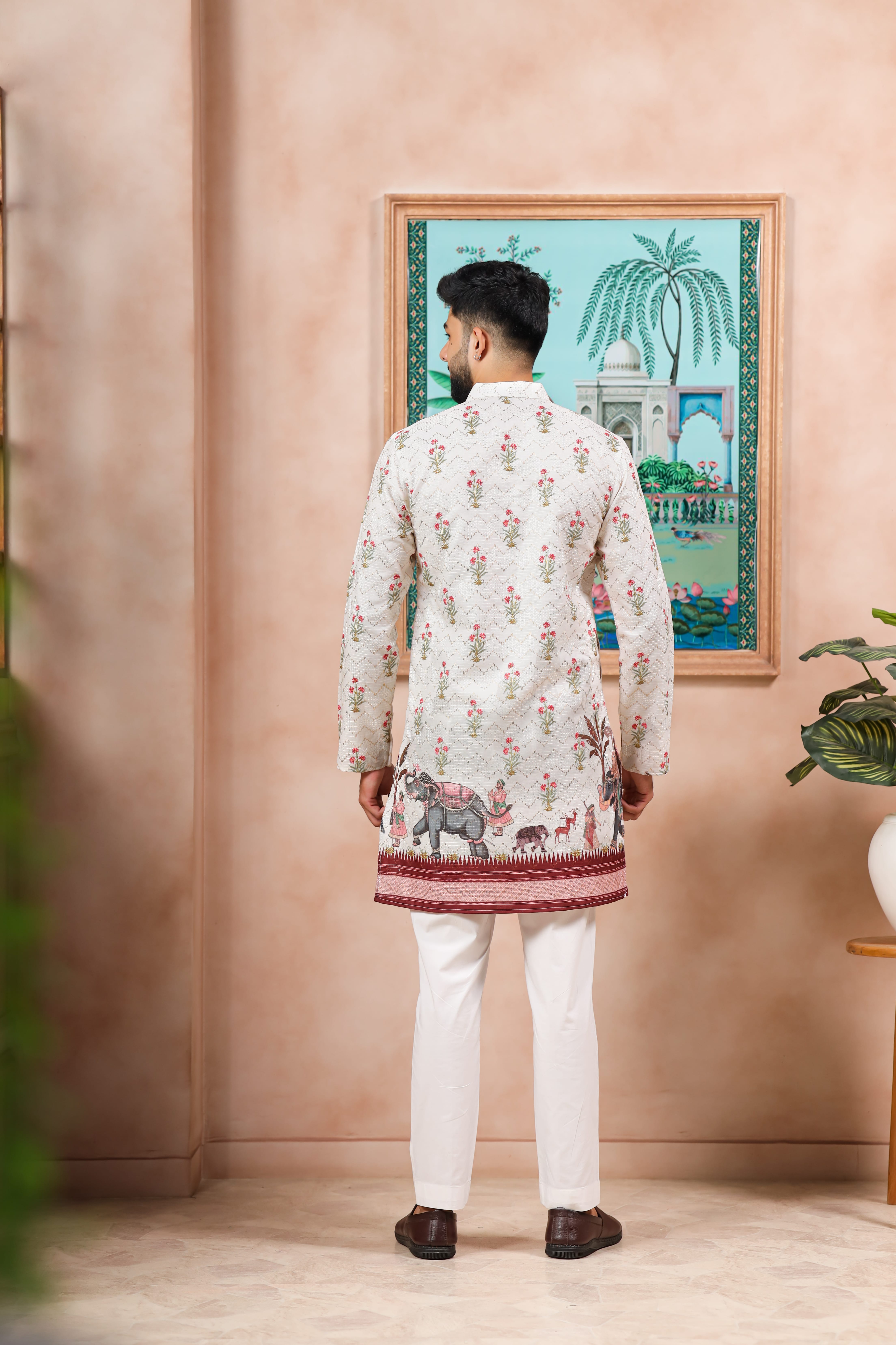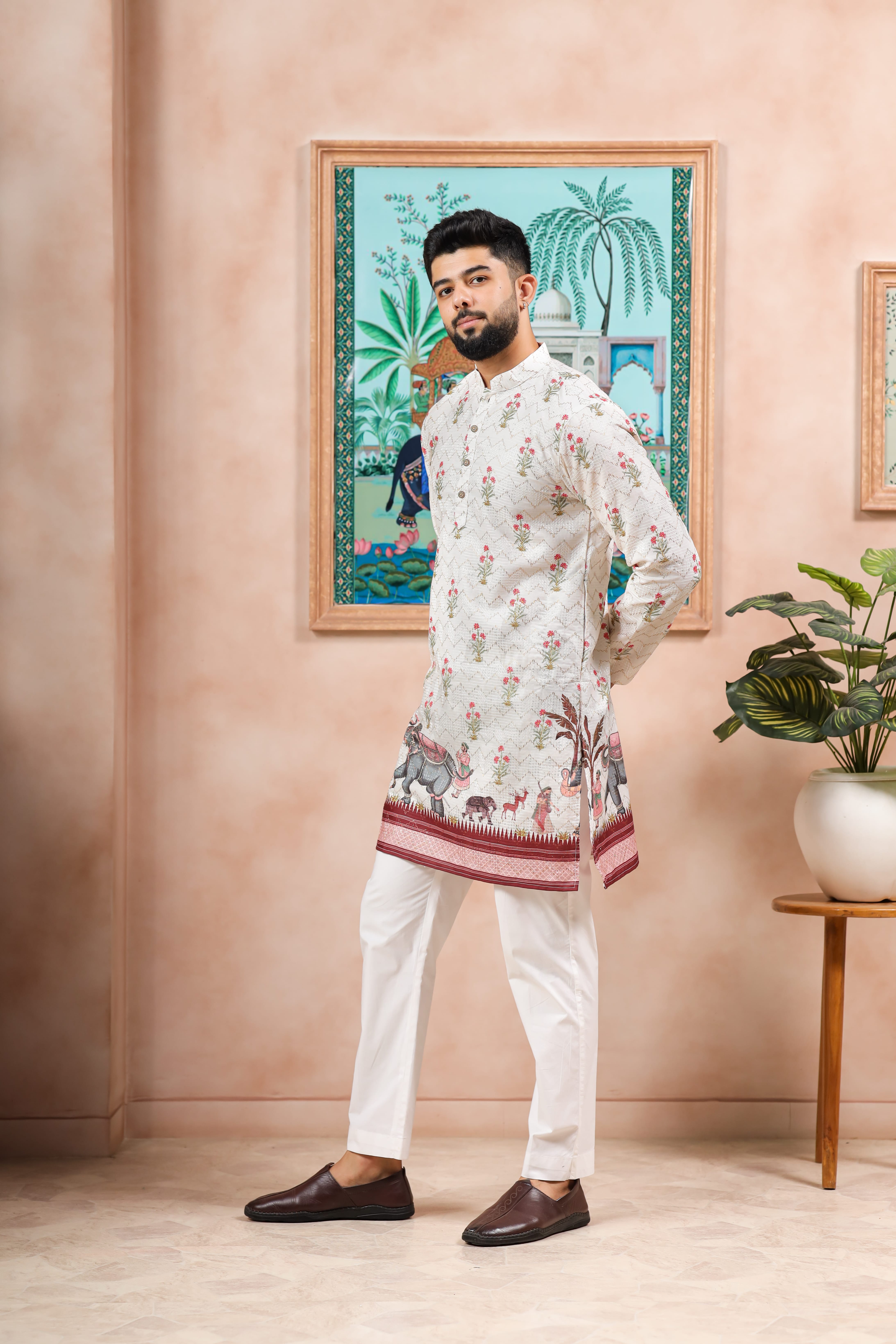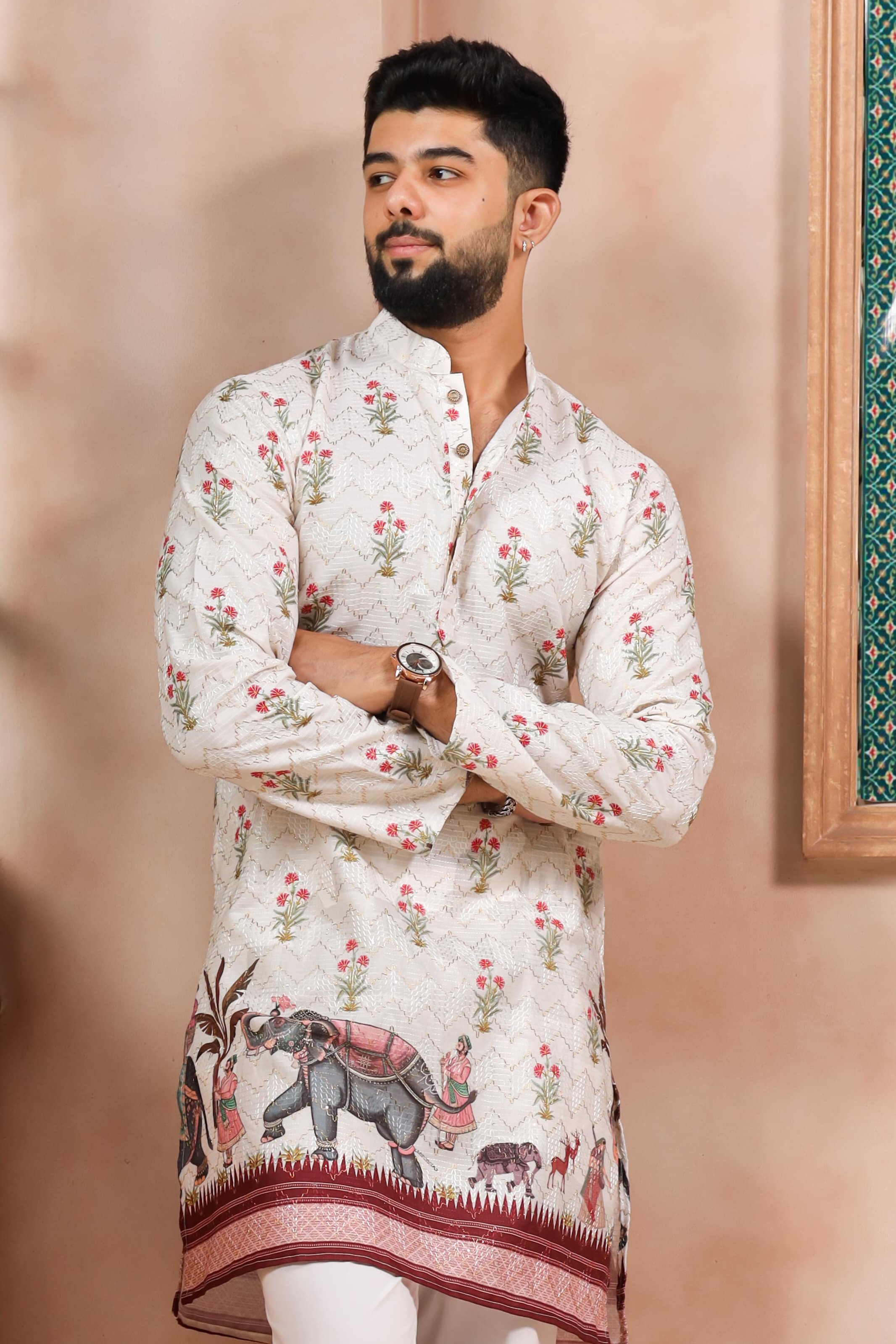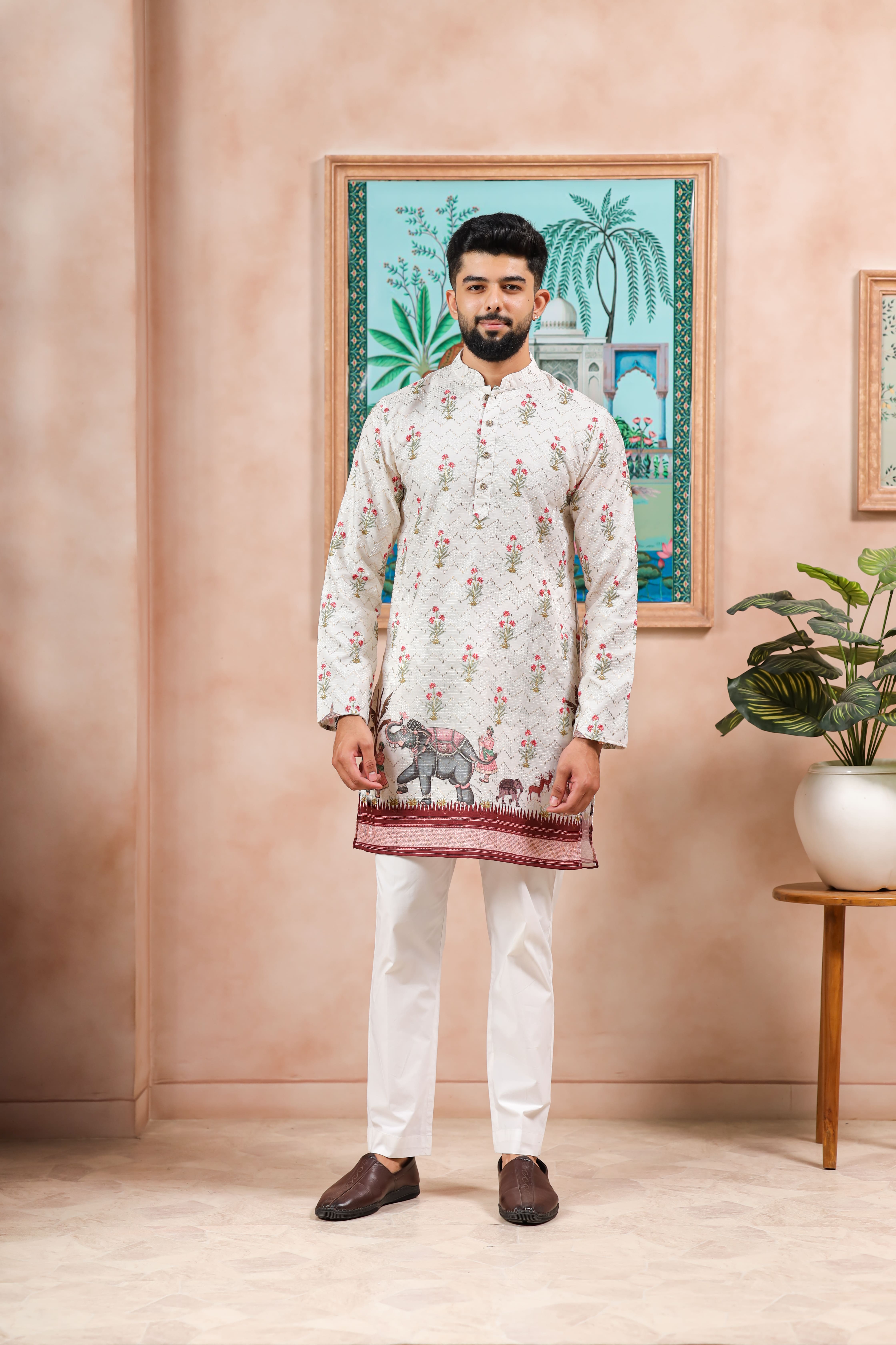 Cream Color Beautiful Blended Cotton Fabric Ceremonial Kurta Pjyama