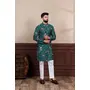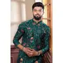 Green Color Ethnic Woven Patta With Digital Printed Ceremonial Kurta Payjama For Men's