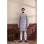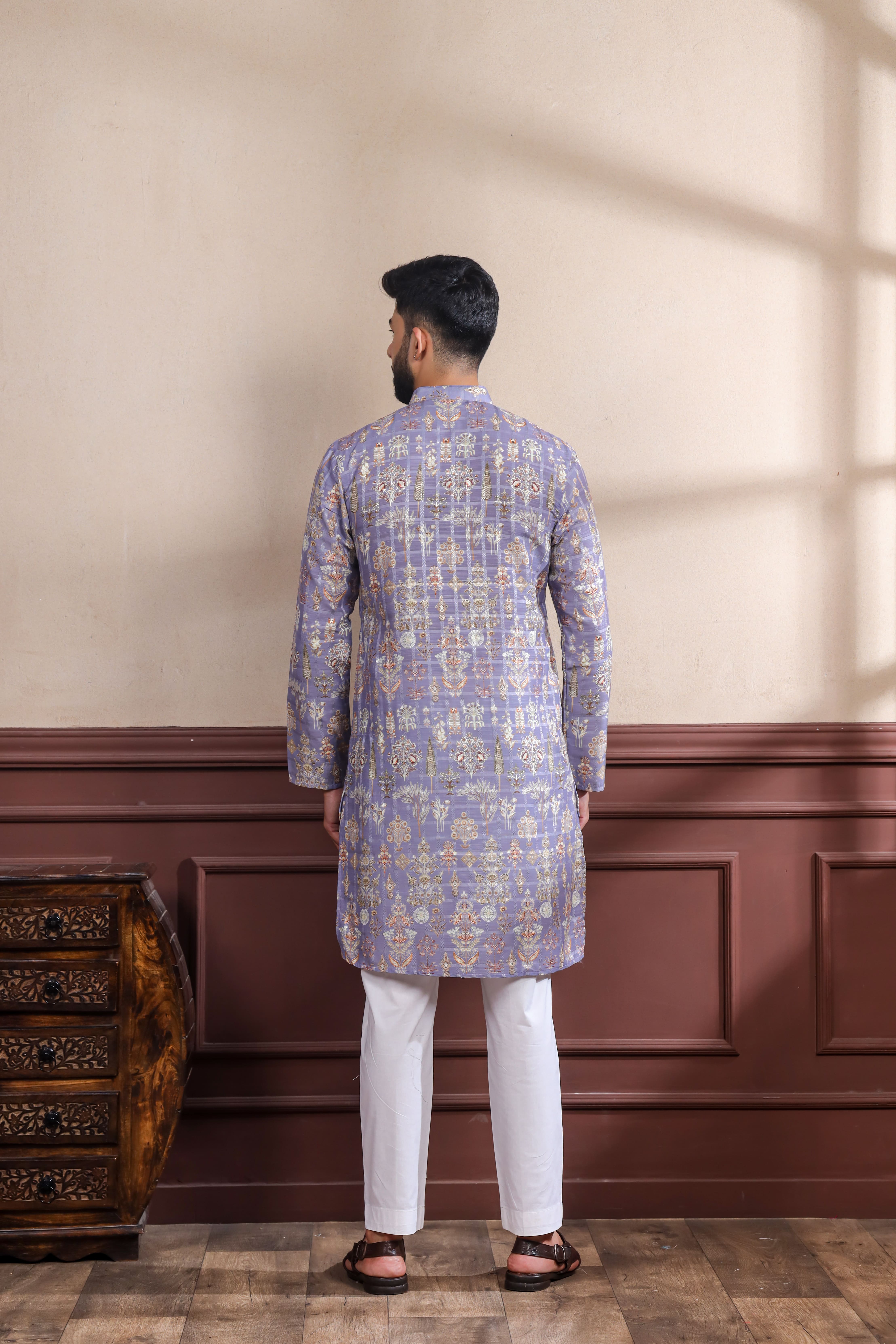 Lavender Color Ethnic Woven Patta With Digital Printed Ceremonial Kurta Payjama For Men's