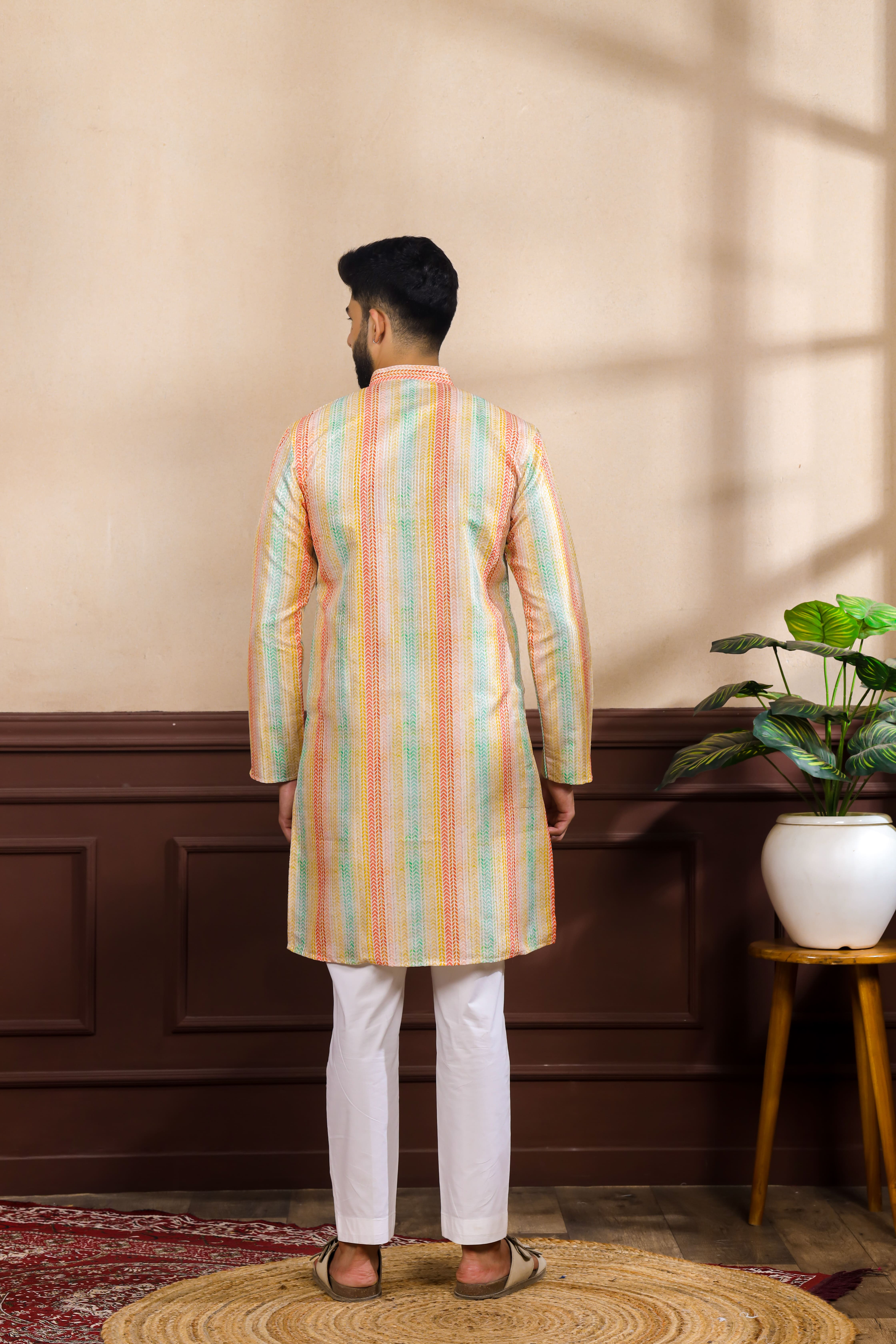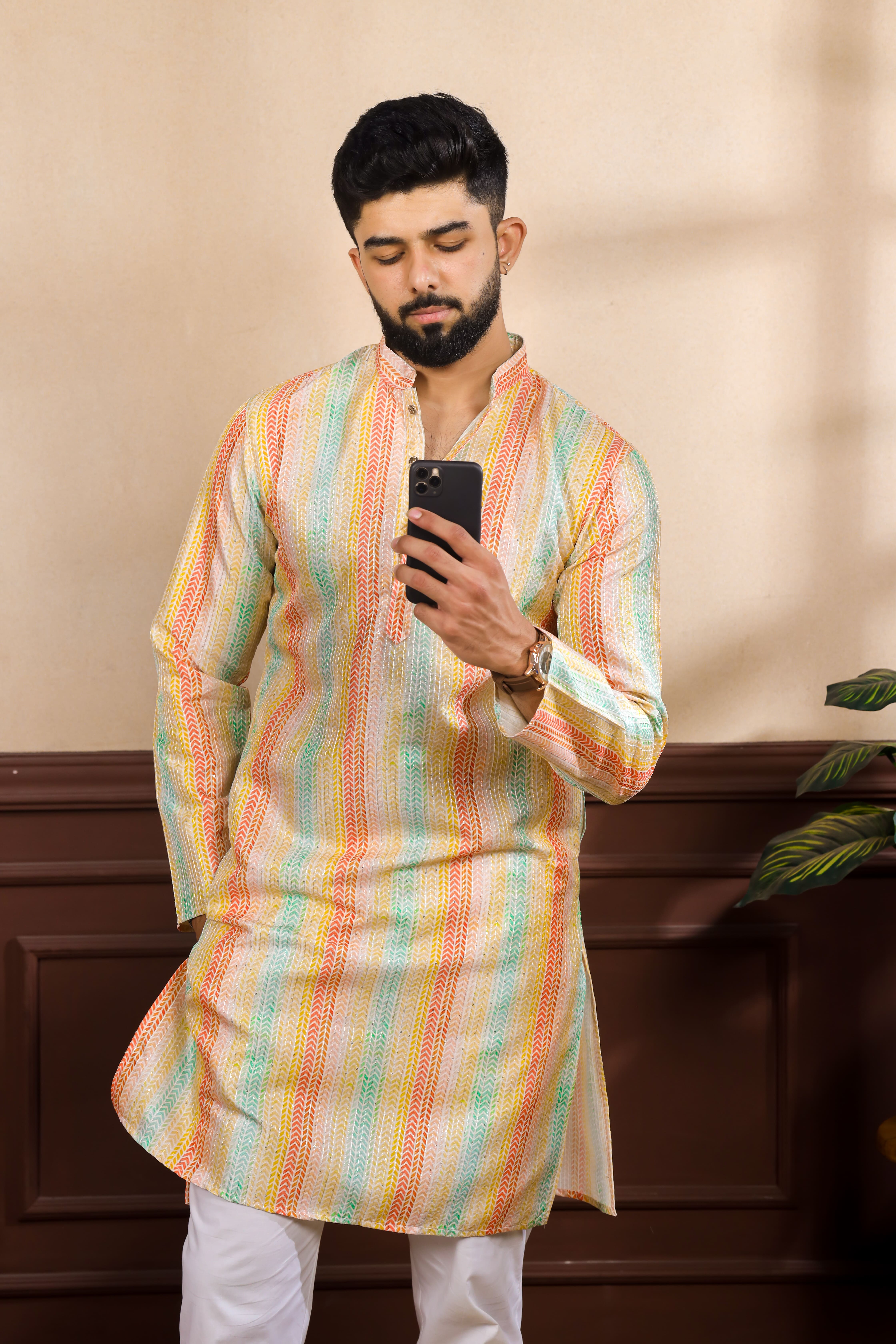 Multy Color Beautiful Art Silk Fabric Smart Print Designer Kurta Payjama
