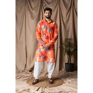 Orange Color Blended Linen Designer...