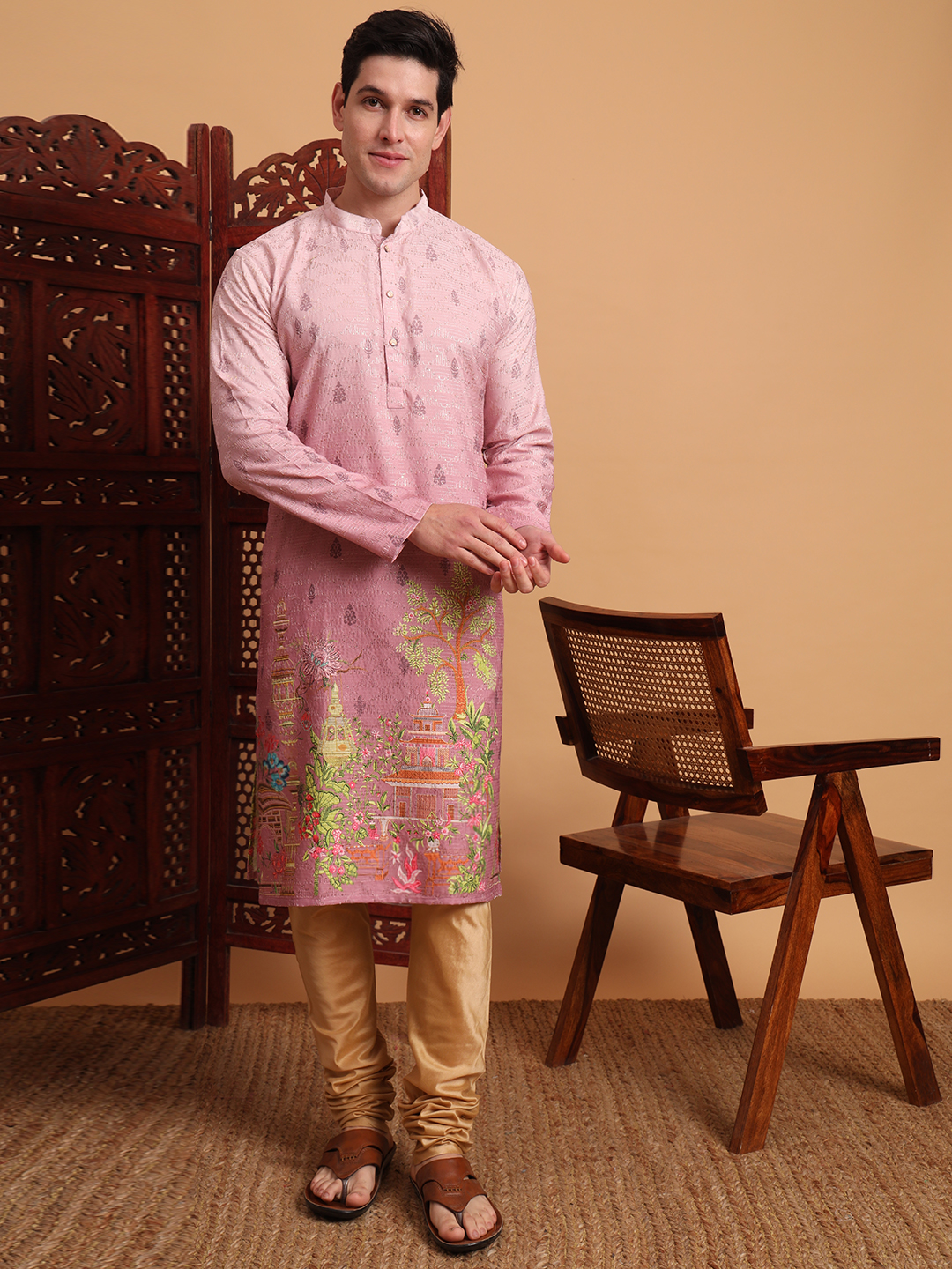 Pink Color Beautiful Men's Traditional Kurta For Ceremonial Looks