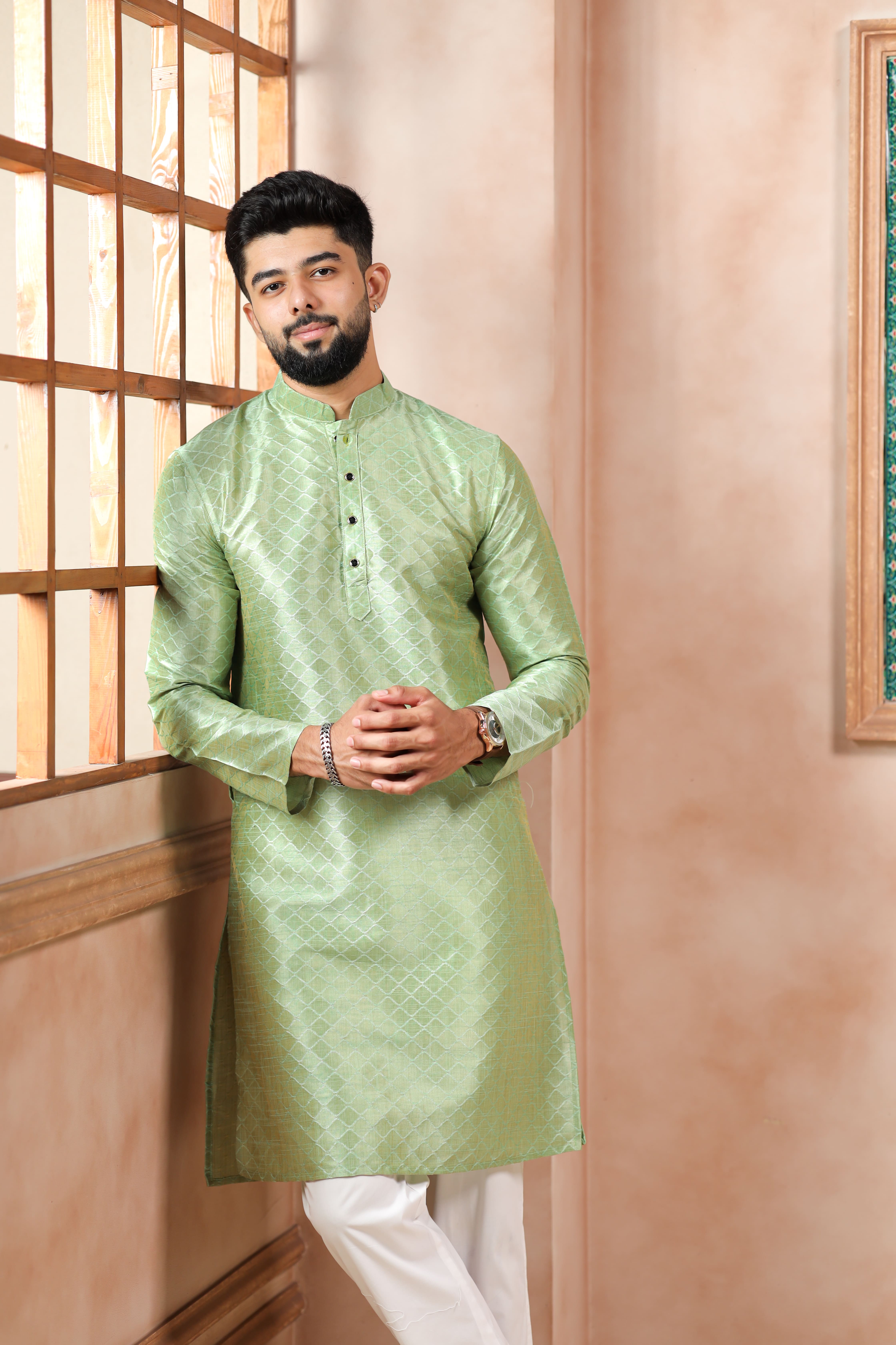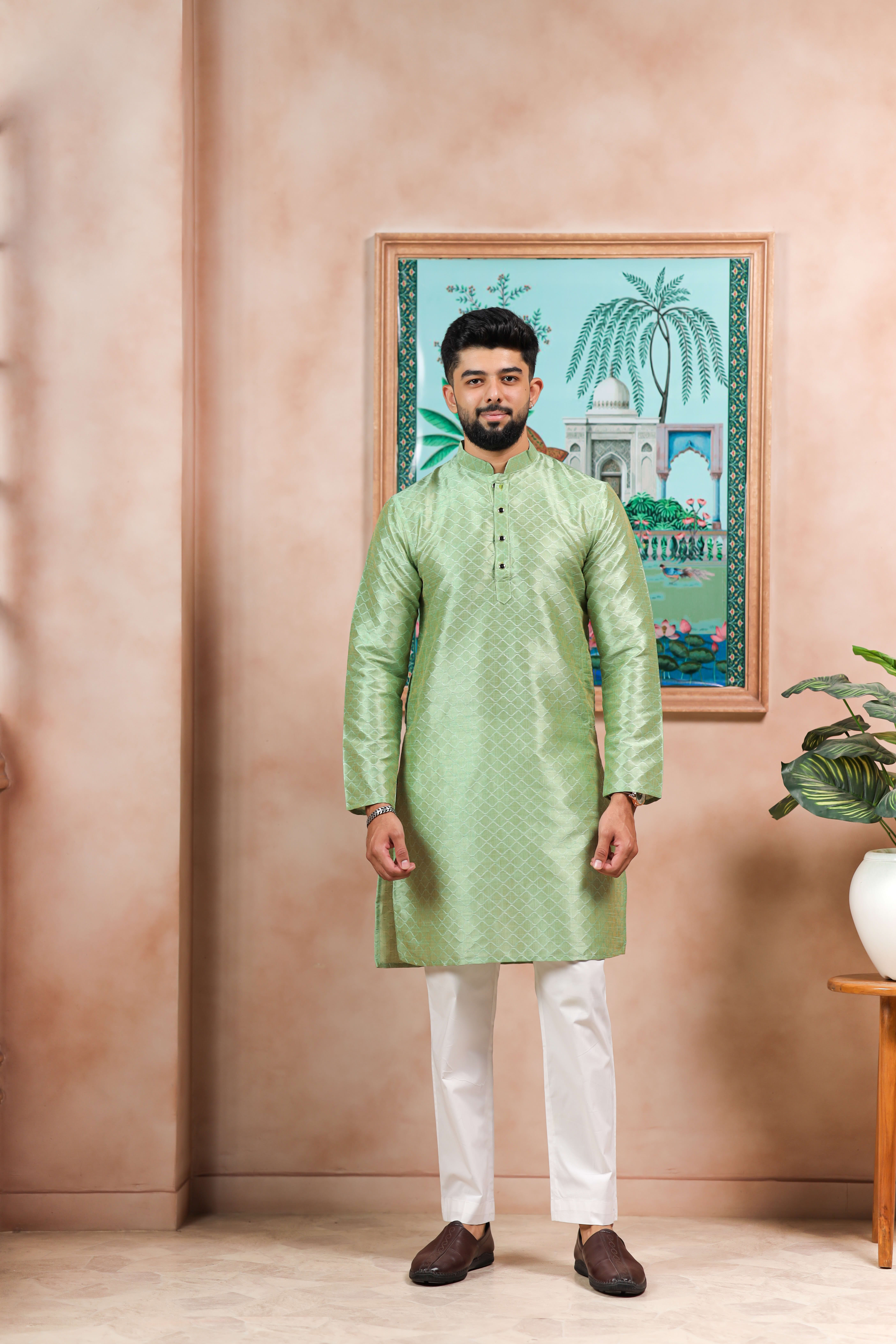 Pista Color Graceful Partywear Kurta Payjama For Mens Ceremonial Looks