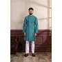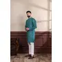 Rama Color Ethnic Woven Patta With Digital Printed Ceremonial Kurta Payjama For Men's