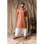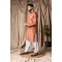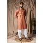 Reddish Orange Color Rayon Fabric Festive Wear Ethnic Men's Embroidered Kurta Payjama
