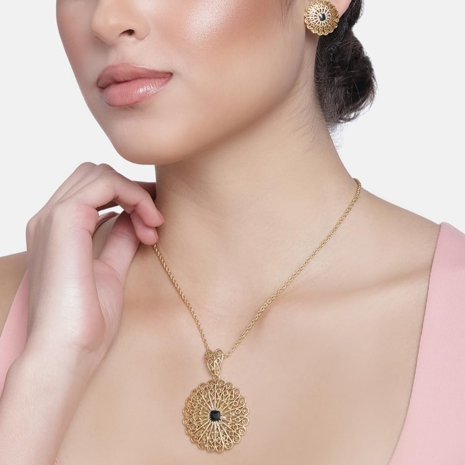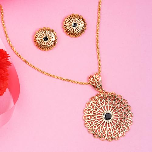 HomeFashionNecklace24 Kt Gold Plated Round Shaped with Fancy Austrian Crystal Necklace Set for Women Suitable for All Occasions Special for Wedding Engagement Anniversary and Birthday