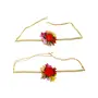 If you are searching for flower jewellery then you are at the right place. We offers a wide collection flower jewellery. This orange-white combination set is one of the jewellery pieces from Anuradha Art Jewellery. It woven with good quality pearl beads & orange flower. This necklace set is best pick for pre-wedding event such as âhaldiâ & also for baby shower. It consists of necklace pair of matching earrings maang tika single bajuband and pair of hath-phool. So order now!