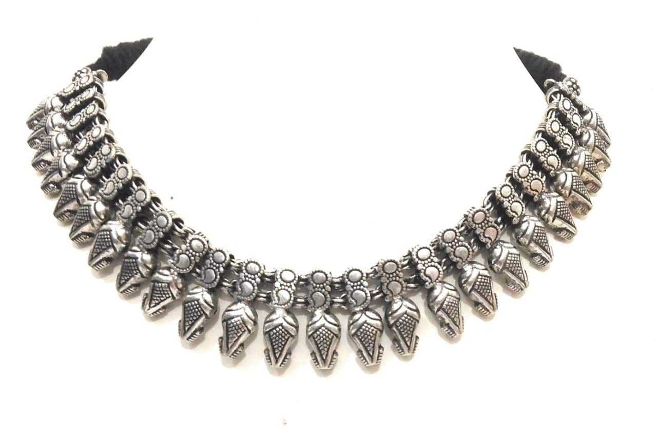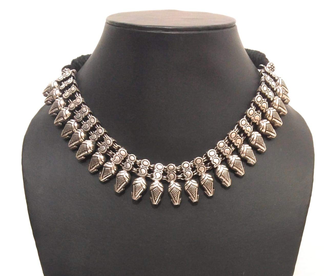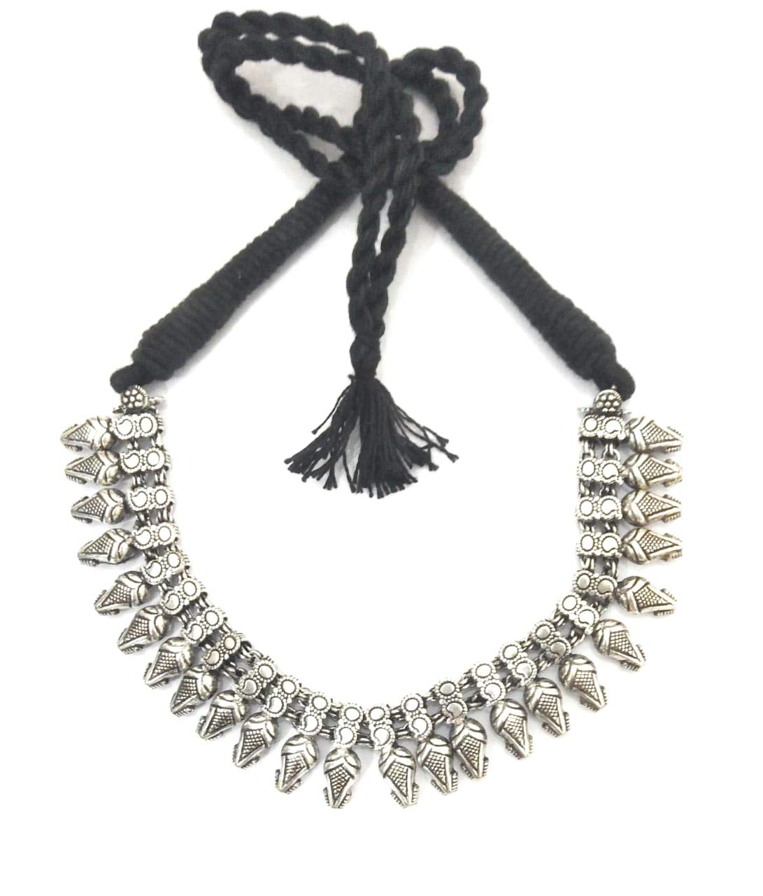 Extremely beautiful handmade tribal black thread necklace with Long Metal Beads Embellishments thread jewelry 14 Inches long choker necklace Adds beauty over time Premium gift for women. Export quality metal and finish offbeat necklace to adore Be beautiful Be hep Be different Be assured for the quality with athizay.